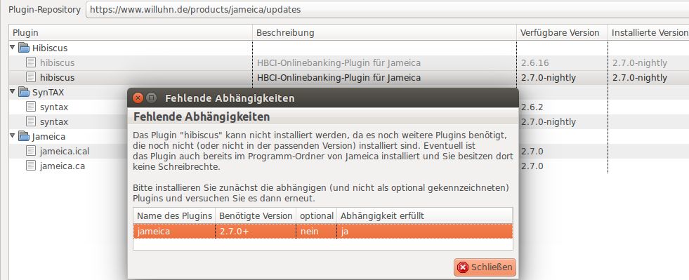 wird aber gesagt, dass ich zu Hibiscus 2.6.16 die Jameica 2.6.4 benötige.