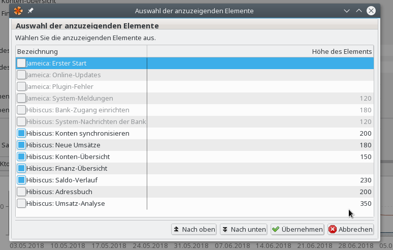 Das Element "Hibiscus: Offene und fällige Überweisungen" habe ich schon vor vielen Jahren abgeschafft, weil es zu unflexibel war (bezog sich nur auf Überweisungen). Aktiviere stattdessen die Option "Fällige SEPA-Überweisungen absenden" in den Synchronisierungsoptionen der gewünschten Konten. Anschließend werden fällige Überweisungen im Element "Hibiscus: Konten synchronisieren" mit angezeigt und können auch von dort aus per Klick auf "Synchronisierung starten" abgesendet werden - am besten gleich zusammen mit dem Abruf neuer Umsätze.