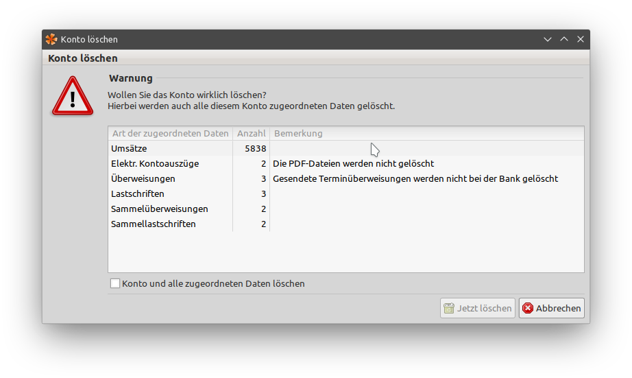 Ich vermute, dass das Durcheinander bei dir entstanden ist, weil beim Anlegen des neuen PIN/TAN-Bankzugangs die zugehörigen Konten neu angelegt wurden und sie danach unter "Hibiscus->Konten" doppelt existierten. Einmal mit dem alten Bankzugang und einmal mit dem neuen.