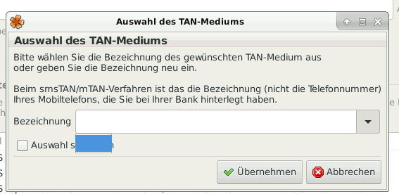 Beim ersten Versuch, mit dem übernommenen Bankzugang die Umsätze einzulesen, kam jedoch nach der PIN-Eingabe eine Leere Auswahlbox für das TAN-Verfahren.