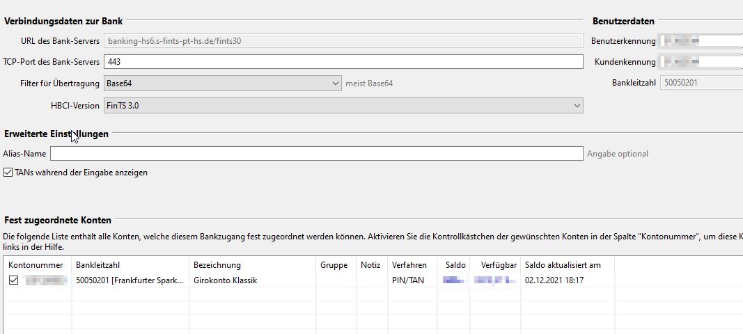 Ich war in der Lage über jeweils folgende Wege das Konto zu synchronisieren, sprich Abruf der Umsätze: