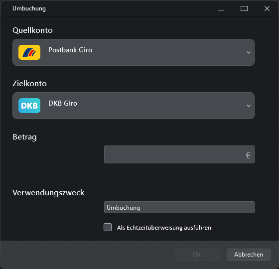 Banking4 bietet ja die nützliche Umbuchung-Option, allerdings per Standard-Überweisung. Wäre es möglich, dazu ein Echtzeitüberweisungs-Pendant oder einen entsprechender Schalter zu schaffen?