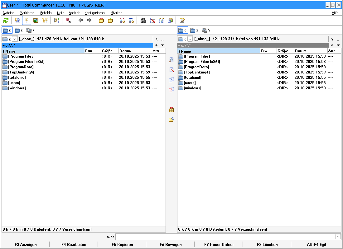 Kurios ist noch, dass der Total Commander nicht bei den installierten Programmen zu finden ist.