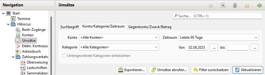 Einstellung 'Beginn des Zeitraumes' in Jameica