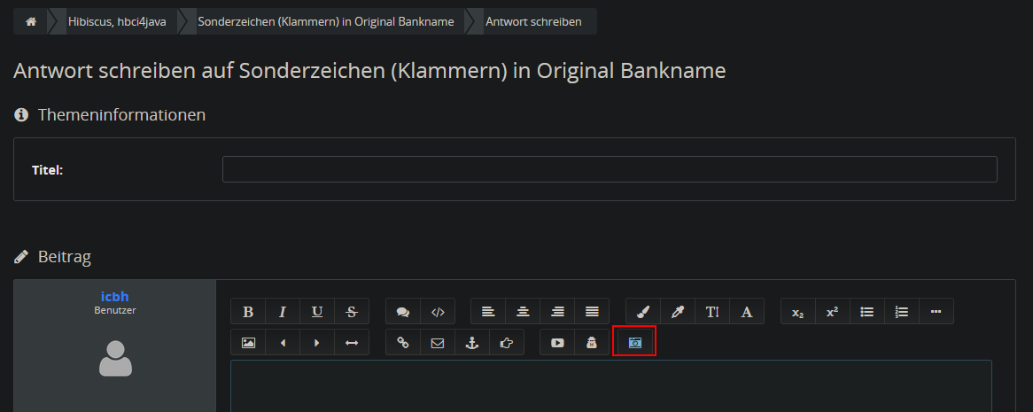Mir ist heute folgendes Kuriosum untergekommen: Manchmal fehlt beim Erstellen einer Antwort der Bilder-hochladen-Button: