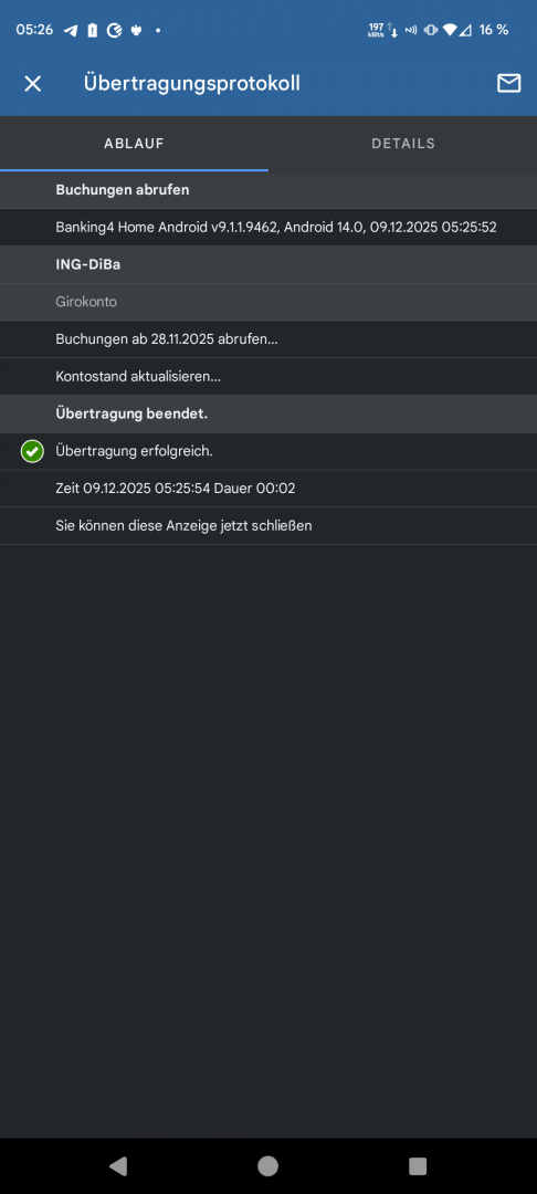 [07.12.2025 14:44:10] Synchronisierung via FinTS/HBCI erfolgreich beendet