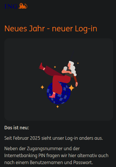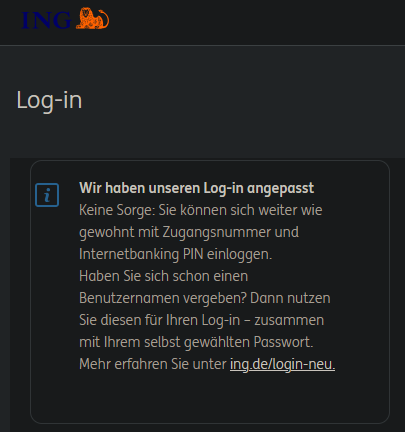 Falls jemand in den letzten Tagen (nach dem 05.12.25) noch einen funktionierenden Abruf bestätigen kann, wäre das spannend – sonst scheint FinTS bei ING nun final abgeschaltet zu sein.