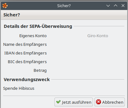 Also es ist total verwirrend hibiscus fragt mich bis zu drei mal und gibt jeweils ein Fenster für Überweisung aus, die Banking-App ebenfalls mindestens zweimal, du kannst immer wieder das doofe angeblich Sichere Passwort in der APP einhämmern, mit viel Glück trifft du irgendwann mal das richtige Fenster damit die Überweisung ausgeführt wird. Mit keinem Glück ist es einfach nur nicht Überwiesen und wenn du es nicht merkst wunderst du dich wenn Mahnungen ins Haus kommen.