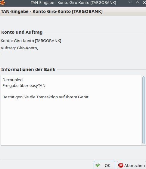 Hallo, die Targobank hat ja umgestellt und biete nun für Homebanking entweder Chipkarte oder Bankingapp an, ich habe letzteres gewählt um auch flexibler zu sein, obwohl ich persönlich das ganze als weit aus unsicherer einstufte als das SMS-Tanverfahren. Ich nutze derzeit unter Linux 2.13.0-nightly Version und könnte gerade :'(