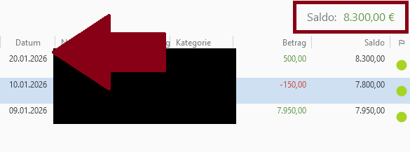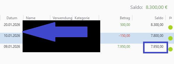 Weitere Buchungen kann ich händisch vornehmen. Aber irgendwas mache ich noch falsch. Ich habe jetzt eine Soll-Buchung vorgenommen (ohne Gegenkonto auf Banking4), die auch erscheint, aber im Saldo nicht berücksichtigt wird. Was könnte da klemmen?