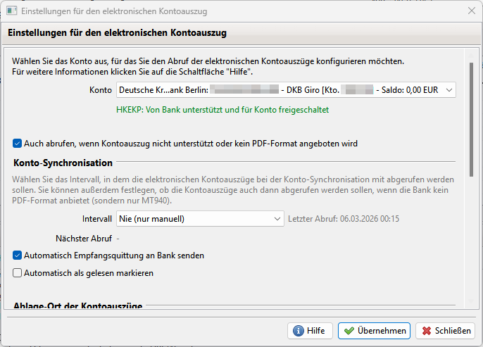 Bei den Einstellungen der Kontoauszüge steht bei dem DKB Girokonto: