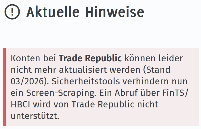 Ich bin unendlich dankbar, dass sich der Subsembly-Support meines Problems angenommen hat. Es gab heute ein Update und seitdem funktioniert auch bei mir wieder alles beim Sync des TradeRepublik Depots.