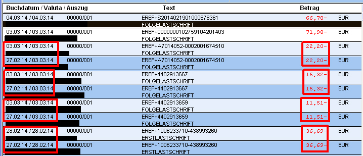 bei mir werden mehrere Lastschriften (mit teilweise unterschiedlichem) Datum (jeweils 1 Targettag versetzt) doppelt angezeigt. Auch der Tagesendsaldo wird so angezeigt, als ob die Lastschrift durchgeführt wurde.
