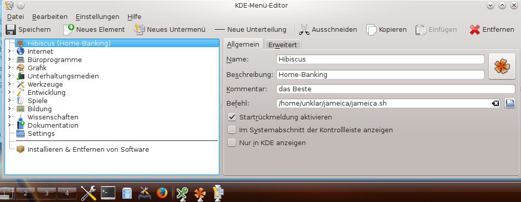 eine Frage an die LINUX Nutzer von Hibsicus: Ich habe den Aufruf von jameica.sh im "Arbeitsfächen-Ordner" (~/Schreibtisch) abgelegt und das Icon "jameica-icon.png" als Symbol zugeordnet. Passt soweit für den Desktop.