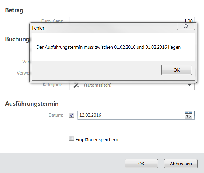 Dann Name, Betrag, Konto ect. eingetragen - hast dann unten im Kalender den 12.02.2016 angeklickt.