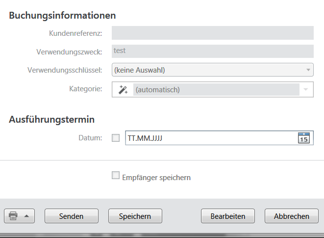 Wenn ich speichere - kann ich trotzdem im Zahlungsverkehr nochmal bearbeiten - den Termin auf 12.02.2106 setzen - dann mit OK nur noch in den AK schieben. Aber das wäre ja wie "ein Pferd von hinten aufzuzäumen"