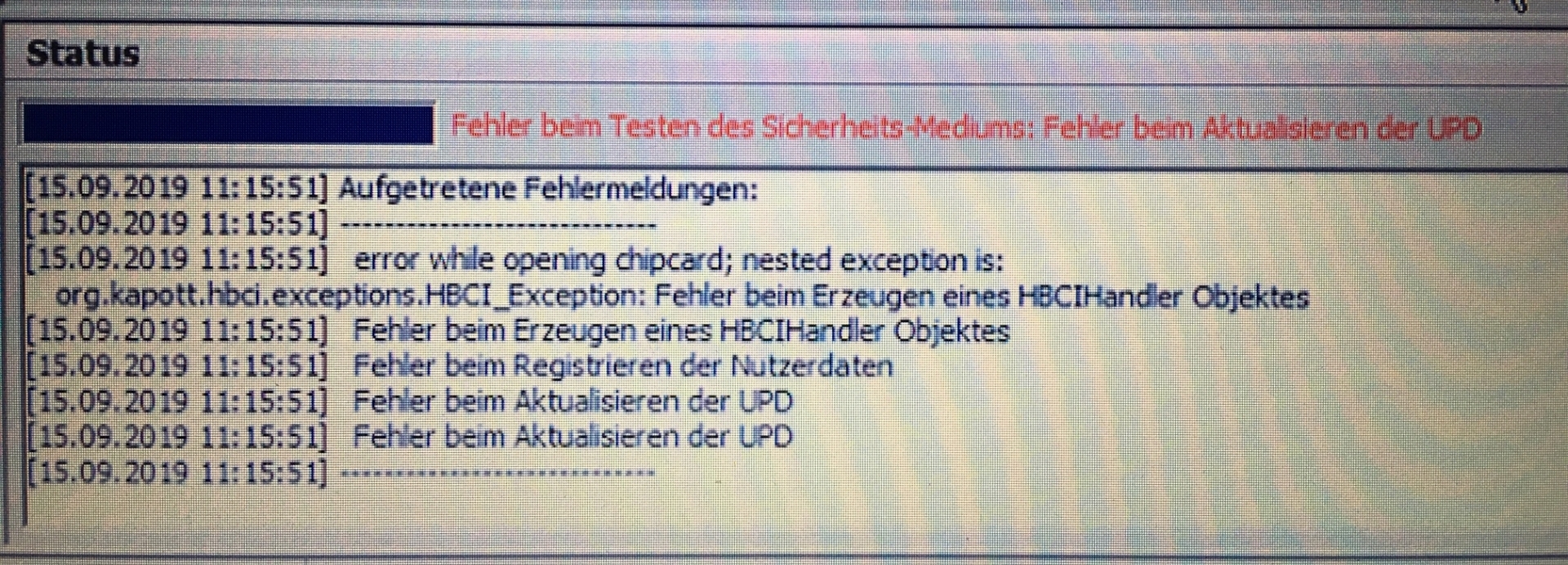 Bei der HBCI Abfrage mit der Bank (Sparkasse) tritt ein Fehler beim aktualisieren der UPD auf.