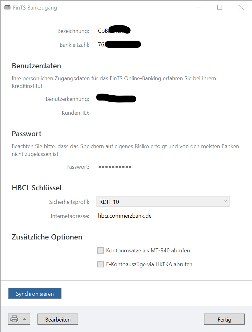 #### Fortschritt: Bankzugang synchronisieren...