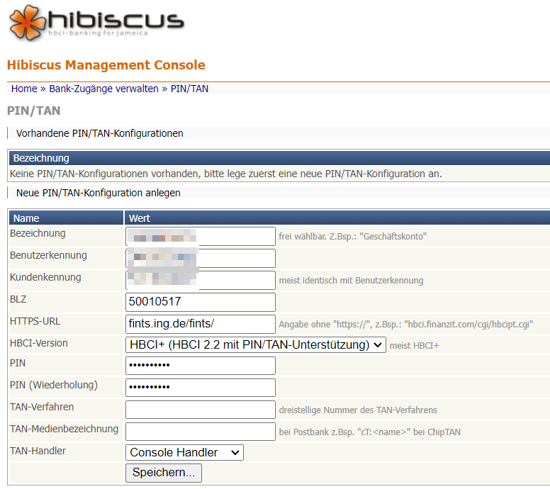 Hibiscus-Server: Einstellungen für ING-Diba Umsatzabfrage