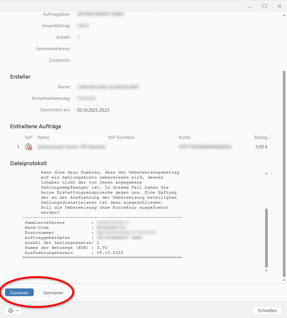 Ich versehe was da steht, aber welchen der beiden Buttons muss ich drücken wenn ich die Überweisung (auf unser eigenes Konto) ausführen will? Auf beiden steht "Stornieren" ... und ich möchte es nicht durch ausprobieren herausfinden müssen.