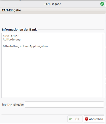 in Hibiscus klappt der Verbindungsaufbau und ich kann die Abfrage auch freigeben in der APP, allerdings erwartet Hibiscus die Eingabe einer TAN:
