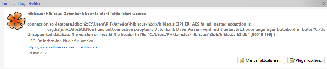 Hibiscus Datenbank konnte nicht initialisiert werden